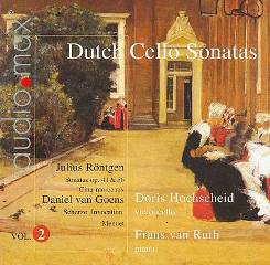 When thinking of the available repertoire for the cello, one may not quickly think of composers of Dutch descent. Cellist Doris Hochscheid, however, has seemingly made it her mission to promote just such works. In fact, this Audiomax album is the second volume devoted to Dutch cello sonatas, following an earlier release devoted to an even narrower subject matter: Jewish Dutch composers. After listening to the two sonatas of Julius Röntgen, one must wonder why these works have remained in obscurity for so long. While they're not on the same level of other cornerstone sonatas written in the same time period, Röntgen's sonatas are still filled with pleasing and easy-to-follow melodies, integrated dialogue between cello and piano, and plenty of contrasts to keep listeners interested. The other works on the program are not sonatas, but short, charming character pieces: Cinq morceaux by Röntgen and three of the 38 short cello works composed by Daniel van Goens. For her part, Hochscheid puts forth a generally pleasing performance. Her tone is not always ideal -- sometimes coming across as thin or hesitant in the upper registers and sometimes forced lower on the instrument -- and intonation is occasionally a bit spotty, particularly in extended triadic sections. Still, listeners interested in new repertoire for the instrument will still enjoy her efforts to bring these works to center stage. English- and German-speaking listeners should note that the first five full paragraphs of the original Dutch liner notes go untranslated, instead beginning in the middle of a thought. --- Mike D. Brownell, Rovi