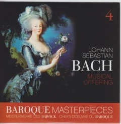 Musical Offering / Musikalisches Opfer, BWV 1079 1. Ricercar a 3 voci (Harpsichord) 6:01 2. Canon perpetuus super Thema Regium (Flute, Violin,Continuo)1:05 Canones diversi super Thema Regium 3. a. Canon a 2 (Harpsichord) 1:13 4. b. Canon a 2 (Two Violins, Continuo) 0:52 5. c. Canon a 2, per motum contrarium (Flute,Harpsichord)0:55 6. d. Canon a 2, per augmentationem, contrario motu(Two Violins, Bass Viol)1:21 7. e. Canon a 2, per tonos (Violin, Harpsichord) 2:53 8. Fuga canonica in epidiapente (Violin, Harpsichord) 2:08 9. Ricercar a 6 (harpsichord) 9:12 10. Canon a 2, quaerendo invenietis (Harpsichord) 1:14 11. Canon a 4 (Two Harpsichords) 2:01 Sonata sopr'il Soggetto Reale, Trio (Flute, Violin, Basso Continuo) 12. I. Largo 4:18 13. II. Allegro 5:44 14. III. Andante 3:46 15. IV. Allegro 3:01 Canon perpetuus, contrario motu (Flute, Violin, Continuo) 16. - 2:09 Barthold Kuijken – traverse flute Sigiswald Kuiken – baroque violin I Marie Lenohardt – baroque violin II Wieland Kuijken – bass viol Robert Kohnen - harpsichord Gustav Leonhardt – harpsichord solo and music director